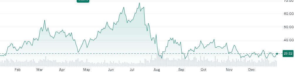 위 그래프에서 알 수 있듯이 2024년 7월 년중 최고점을 찍고 현재까지 큰 반등을 하지 못하고 있습니다.